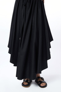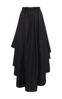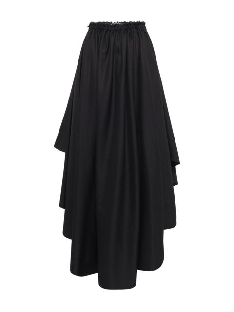 Solid suiting half-moon drawstring skirt with custom silver spiral teardrop charms sits lower on the waist and creates a full dramatic unexpected sweep shape. Details: - 49% Virgin Wool 30% Silk 21% Linen - Drawstring closure - Drop-waist - Made in Italy