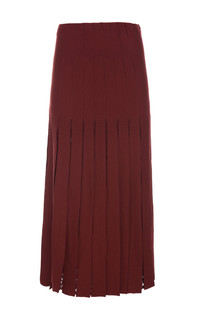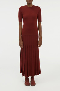 Debutante Knit Pleated Maxi Skirt in Burnt Sienna Merino Wool