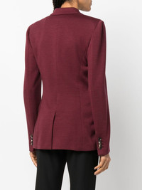 double-breasted wool-blend blazer burgundy merino wool blend notched lapels double-breasted button fastening long sleeves two side flap pockets full lining central rear vent Made in Italy Composition Lining: Polyamide 100%, Viscose 53%, Cupro 47% Outer: Merino 100% SIZE & FIT Model measurements Height 5 ft 10 in(1.78 m) Bust/Chest 33.07 in(84 cm) Hips 36.61 in(93 cm) Waist 24.8 in(63 cm) Measurement CHEST 35.43 in(90 cm) SLEEVE LENGTH 24.8 in(63 cm) LENGTH 28.34 in(72 cm) FittingInformation This piece fits true to size. We recommend you get your regular size Cut for a slim fit Made with a mid-weight fabric