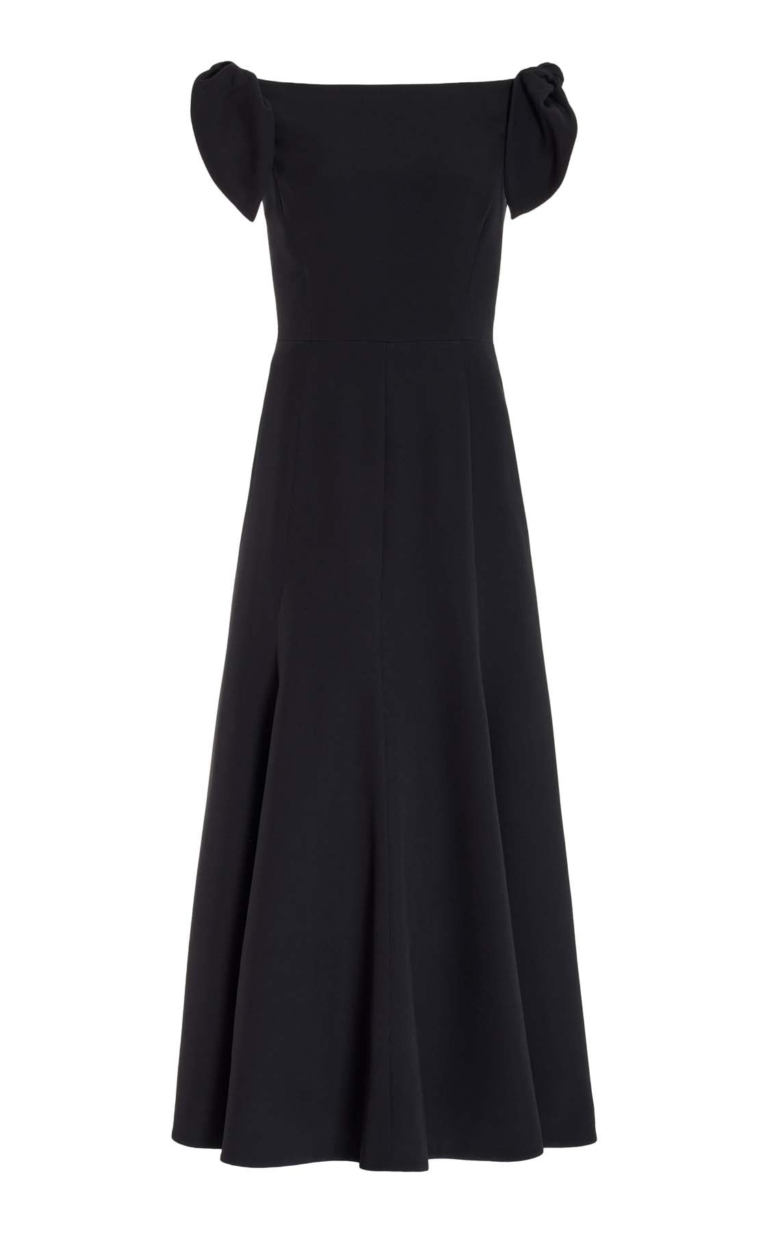 The Eda off-the-shoulder dress offers the idea of a slim-fitted, feminine style in silk wool cady. Beautifully finished and detailed with our signature knot-tie fastening at the shoulders. Details: - 100% Silk - Made in Italy Size and Fit: Fits true to size. Model is 5'11" and wearing a size 38.