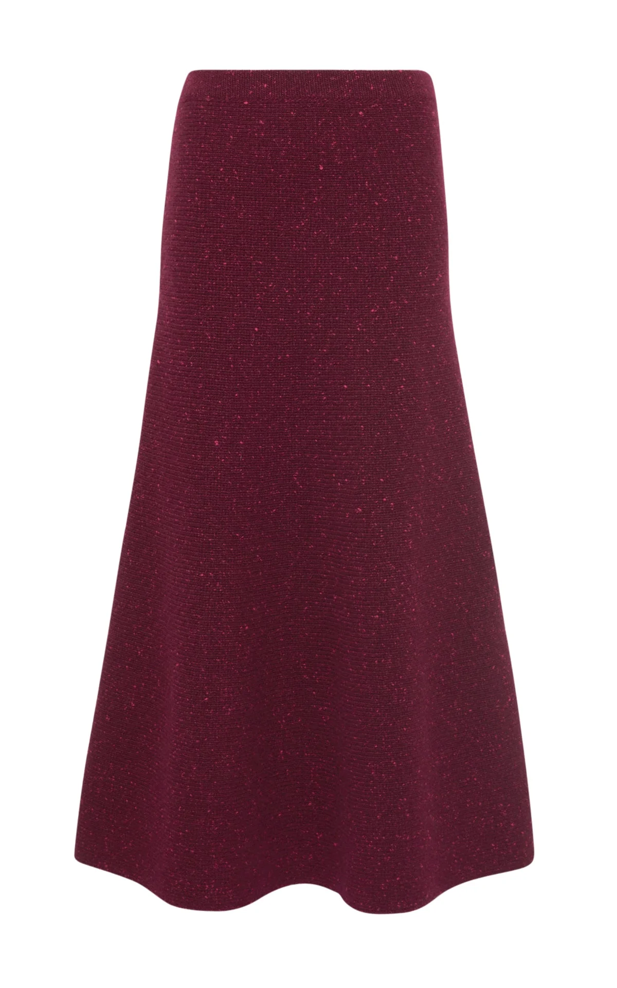 Eden Knit Midi Skirt in Bordeaux Speckled Aran Cashmere
