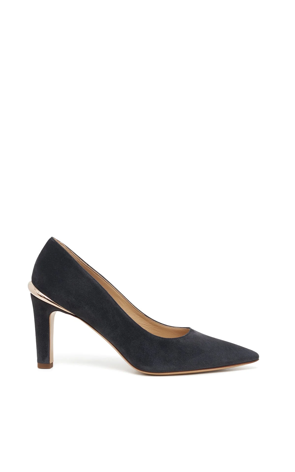 The Edwina Heel is a classic stiletto pump featuring a gold-brass detail in Suede leather. Details: - 100% Goat Suede - 100% Calf leather sole - Heel height 75mm | 3.0 in - Pointed Toe - Italian sizing - Made in Italy