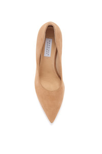 The Edwina Heel is a classic stiletto pump featuring a gold-brass detail in Suede leather. Details: - 100% Goat Suede - 100% Calf leather sole - Heel height 75mm | 3.0 in - Pointed Toe - Italian sizing - Made in Italy