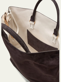 Gabriela Hearst "Eileen" tote bag in suede Rolled top handles, 6" drop/ 0.8"W Exterior, D-ring clip Approx. 18"H x 16"W x 4"D Made in Italy Online Inquiries: BGS21_V5ZSL| Store Inquiries: #4619123