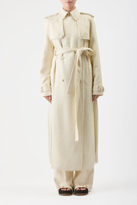 Eithne Trench Coat in Ivory Silk Wool