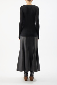 Emma Pointelle Cardigan in Black Silk Cashmere