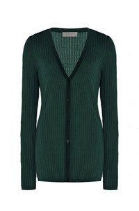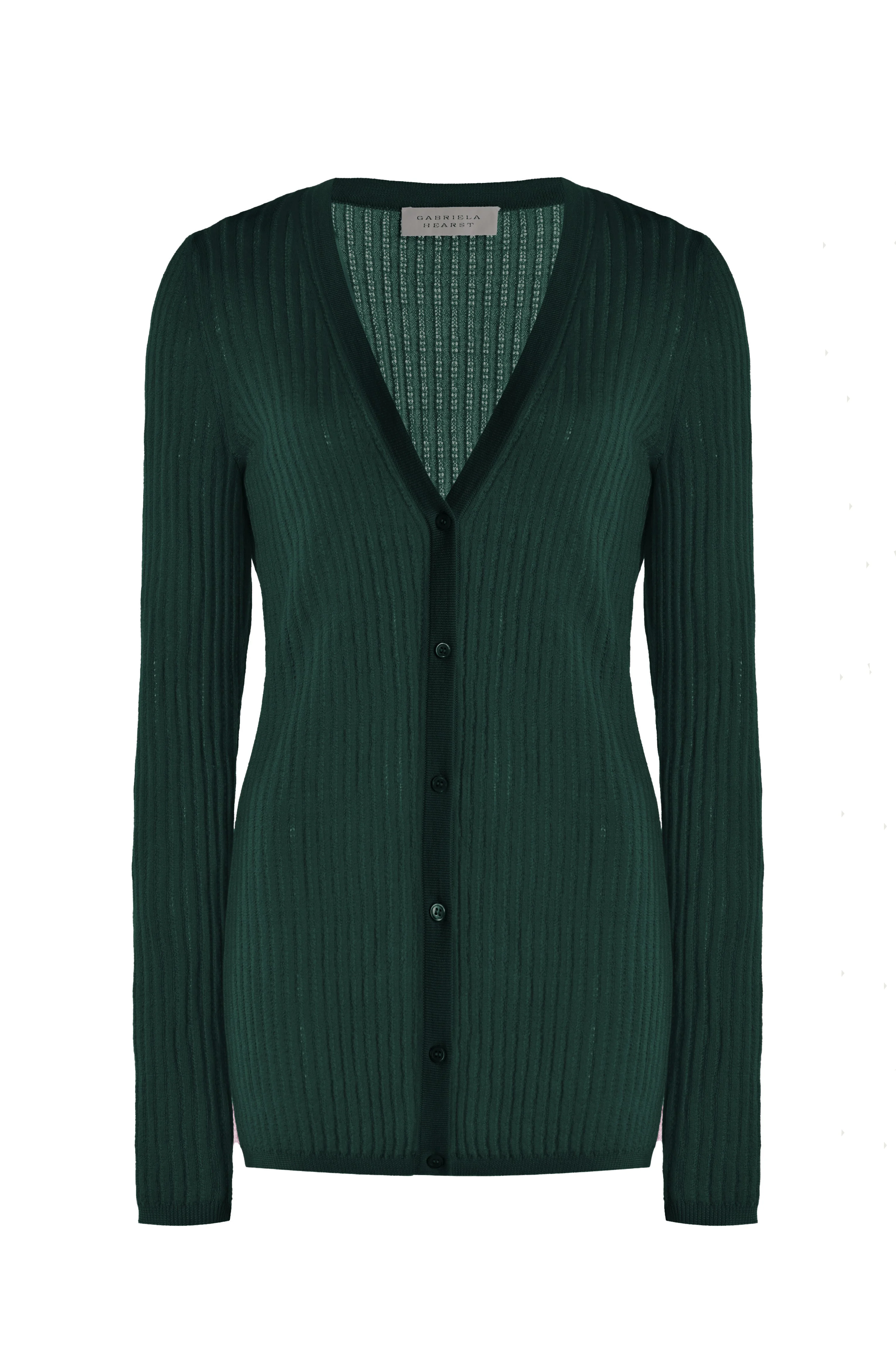 Emma Pointelle Knit Cardigan in English Green Cashmere Silk