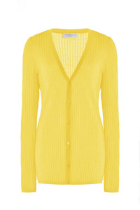 Emma Pointelle Knit Cardigan in Goldenrod Cashmere Silk