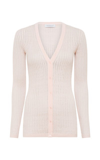 Emma Pointelle Knit Cardigan in Pale Blush Cashmere Silk
