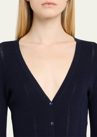 Gabriela Hearst "Lillian" knit cardigan V neckline; button front Long sleeves Slim fit Wool Imported Model is 5'10"/177cm. Online Inquiries: BGS21_B9LKZ| Store Inquiries: #4902760