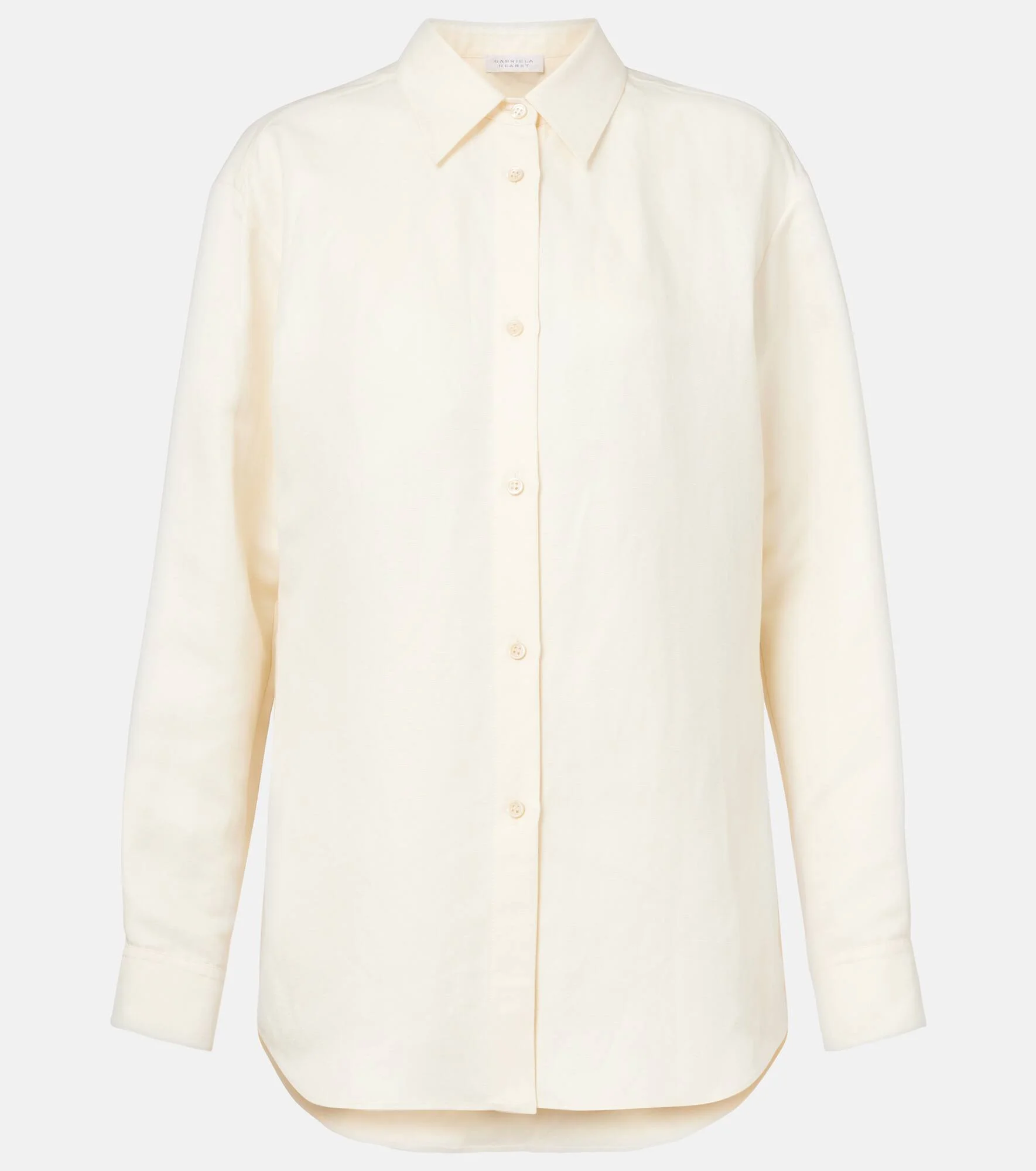 Crafted in Italy, the Ferrara shirt from Gabriela Hearst is cut from premium linen and silk. This design is trimmed down the front with signature tone-on-tone buttons. Product Details - Material: 59% linen, 41% silk - Care instructions: dry clean - Made in Italy - Designer color name: Ivory - Item color: white - Collar: classic (Straight point) - Cuff: two buttons - Hem: uneven, rounded - Contains non-textile parts of animal origin - Item number: P01035853 Size & Fit - Fits large to size - we recommend trying one size smaller - Dropped shoulders - Designed for a loose fit - Non-stretchy fabric - Falls below the hip - The model seen in the picture is 178cm-5'10" and wearing a size IT 38