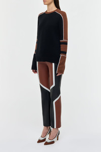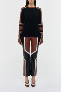 Finnian Knit Moto Sweater in Cognac & Black Cashmere