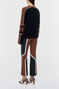 The Finnian Sweater, crafted from pure cashmere, features bold equestrian color-blocking—an homage to Gabriela’s roots and the heritage of her utilitarian upbringing in the ranchlands of Uruguay Details: - 100% Cashmere - Crew Neck - Long Sleeves - Block Print - Made in Italy