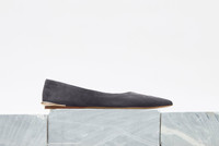 The Fleur Flat is a classic ballerina flat featuring a gold-brass detail in suede Details: - 100% Calf Suede - 100% Calf leather lining - 100% Calf leather sole - Heel height 5mm - Pointed Toe - Slip-on - Made in Italy - Italian sizing