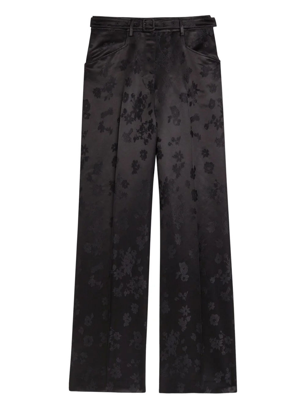 floral-print belt flared trousers Highlights - Black - Floral-print - Belt - Buckle-fastening - Front pockets - Tonal stitching Imported Composition Fabric 100% Washing instructions Read Manufacturer Guidelines