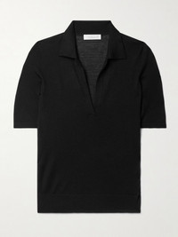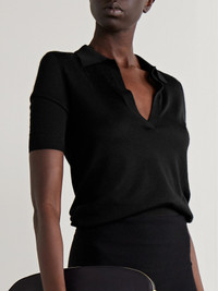 Frank cashmere and silk-blend polo shirt Black