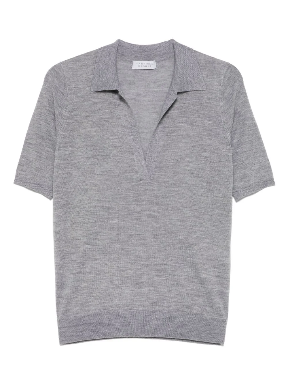 knitted polo top Highlights - Heather grey - V-neck - Polo collar - Short sleeves - Ribbed trim Imported Composition Cashmere 70%, Silk 30% Washing instructions Dry Clean Only