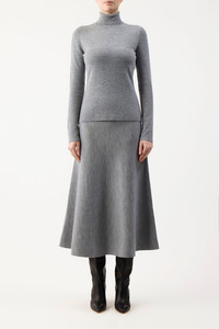 The Freddie Skirt is a Gabriela Hearst classic, made of the highest quality cashmere silk blend. Formed and fitted though the waist and hips it flares out perfectly towards the hem. Perfectly paired back with the May Turtleneck, it creates a neutral utilitarian ensemble. Details: - 90% Wool, 10% Cashmere - Made from Italian Yarns Size and Fit: Fits true to size. Model is 5'11" and wearing a size S.