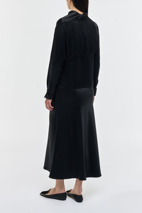 The Frei Skirt, crafted in luminous super-double 100% silk satin, is designed to hug the waist and drape into a subtly fluted A-line silhouette at the sweep; serving as an elegant, understated foundation for styling throughout our Resort ’26 collection. Details: - 100% Silk - Maxi Length - Fit and Flare - Made in Italy