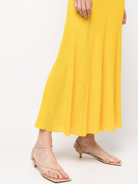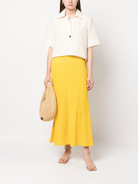 high-waisted wool skirt Highlights - Banana yellow - Wool - High-waisted - Rear zip fastening - Flared hem - Calf-length Made in Italy Composition Wool 100% SIZE & FIT Model measurements Height 5 ft 10 in(1.78 m) Bust/Chest 33.07 in(84 cm) Hips 35.82 in(91 cm) Waist 26.96 in(68.5 cm) FittingInformation Designed for a slim fit that sits just away from the body offering a close yet comfortable fit Made with a midweight knit, this piece offers some stretch This piece fits true to size – take your usual size Washing instructions Dry Clean Only