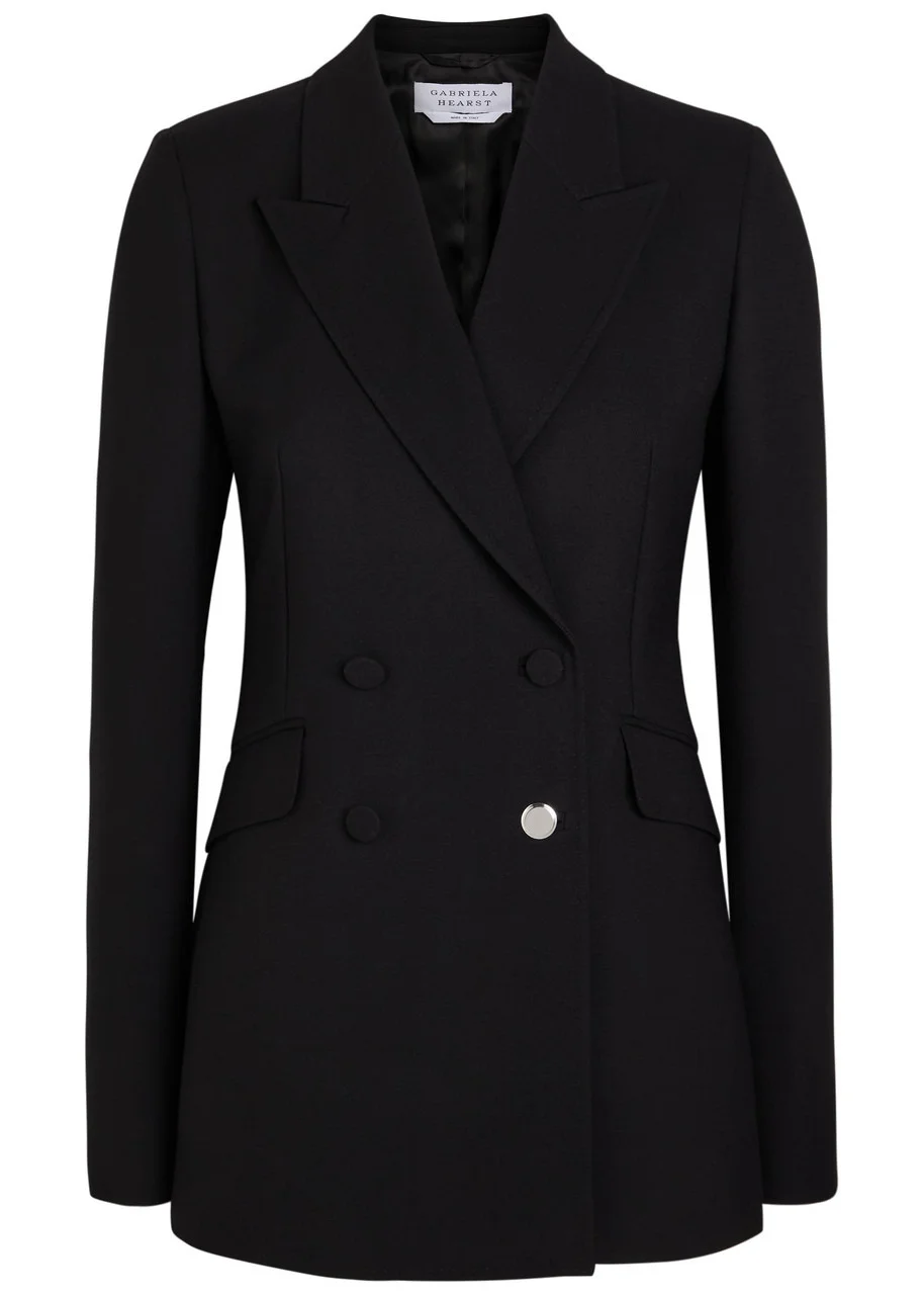 Info & Care Gabriela Hearst wool blazer Peaked lapels, padded shoulders, button-fastening cuffs, two front flap pockets, back vent, internal slit pocket, fully lined Double-breasted button fastenings at front 100% wool; lining: 100% cupro Dry clean Size & Fit Length shoulder to hem: 28 inches/ 71cm Midweight Slim fit Model is 5'8"/172cm and wears a size IT40