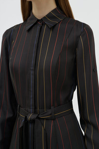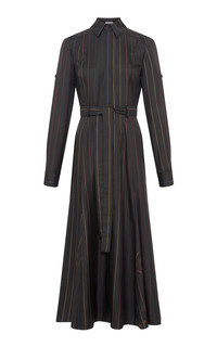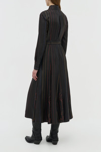 Galway Shirtdress in Charcoal Multi Pinstripe Silk Twill