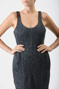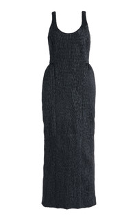 Artisanal all-over ruching in leather gives the Girard dress a unique presence. A fitted waist contrasts against the sculptural look through the hips. Perfectly complete with an effortless tank detail neckline front and back. Details: - 100% leather - Scoop neckline - Back-zip closure - Hip padding - Maxi hem - Made in Italy Size and Fit: Fits true to size. The model is 5'11" and wearing a size 38.