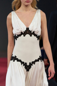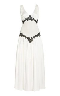 The highland slip dress boasts an Ivory double silk satin draped upper bodice and skirt, combined with a formed double-knit merino that flatters through the waist. An anatomically placed custom signature swirl lace detail frames the form. Details: - 100% Silk - Lace Detail - Italian sizing - Made in Italy Size and fit: Fits true to size. Model is 5'11" and wearing a size IT 38.