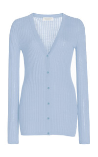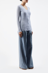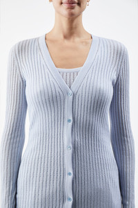 Homer Pointelle Knit Cardigan in Halogen Blue Cashmere Silk