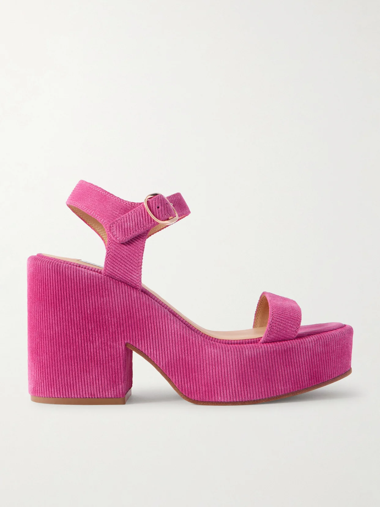 Gabriela Hearst's 'Iman' sandals are set on block heels balanced by sturdy platforms. They're made from ribbed suede and have a classic two-strap design with an adjustable rose gold-tone buckle at the ankle.