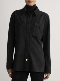 Gabriela Hearst's 'Irene' shirt is cut for a roomy fit from smooth suede in classic black. It's fitted with flap pockets and has five covered buttons and a contrasting silver-tone one - the type of considered details we love from the designer. Small to size. See Size & Fit notes. Size & Fit - Fits small to size, take one size larger than normal - Designed for a slightly loose fit - Supple, non-stretchy suede - Model is 180cm/ 5'11", normally wears a size Small and is wearing a size Medium Model measurements: - Bust: 85cm/ 33.5" - Waist: 62cm/ 24.5" - Hip: 88cm/ 34.5" Details & Care - Black suede - Button fastenings through front - 100% suede (Calf)