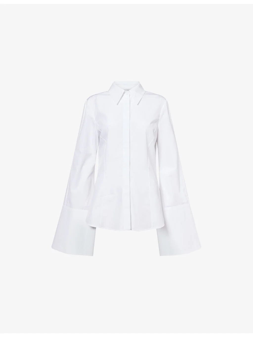 PRODUCT DETAILS - Gabriela Hearst cotton shirt - 100% cotton - Concealed button fastenings at front - Regular fit, collar, long flared sleeves, buttoned cuffs, curved hem - Machine wash cold - Made in Italy - True to size - Size UK 8: length 27in / 69cm - Model is 5ft 10in/1.78m and wears a size UK 8 - Lightweight, non-stretch Ref: R04581606
