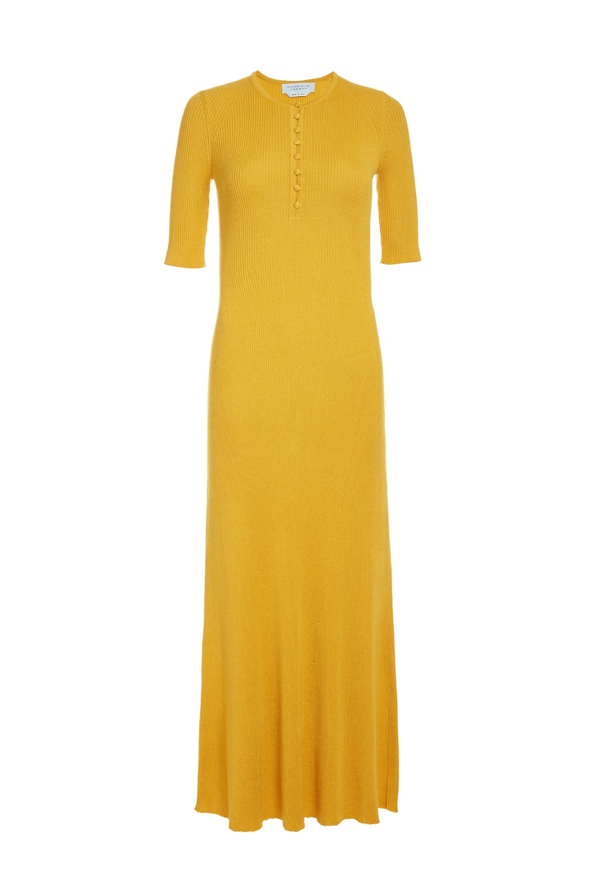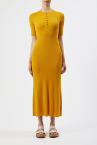 The Johanna Rib Henley Dress is updated classic of the Jenny Henley Pullover. Interpreted here in luxurious ribbed silk cashmere. A partial button-front opening is updated with a self-covered multi-button detail with long midi length hem. Details: - Made in Italy Size and Fit: Fits true to size. Model is 5'11"" and wearing a size S.