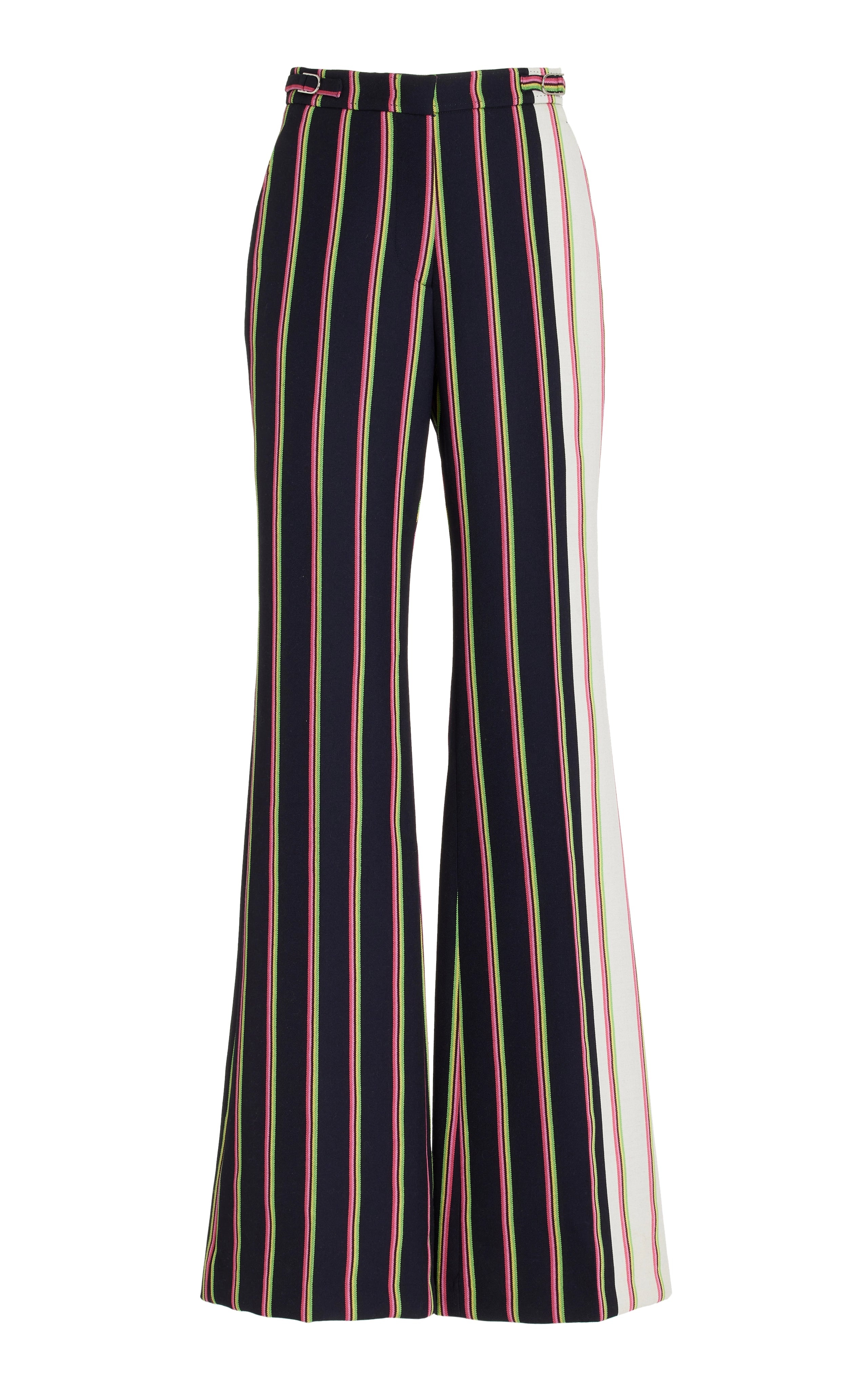 The Jones pant in pinstripe detail provides the perfect look combining signature hardware that punctuates the waistband with an easy flare leg. Recalling the lines of the classic Vesta pant, a relaxed but finished look is created. Details: - 99% Wool, 1% Silk - Made in Italy Size and Fit: Fits true to size. Model is 5'11" and wearing a size IT 38.