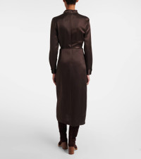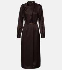 Gabriela Hearst's designs are all carefully constructed, showcasing an uncompromising dedication to quality and craft. The Josef midi dress is crafted from silk and boasts a belted waist. Product Details - Material: 100% silk - Care instructions: dry clean - Made in Italy - Designer color name: Chocolate - Item color: brown - Details: 100% silk - Hardware color: gold - Detachable belt - Cuff: two buttons - Closure: concealed zipped back - Long vent - Item number: P01085867 Size & Fit - Fits large to size - we recommend trying one size smaller - Cinched waist - Adjustable at the waist - Non-stretchy fabric - slit length 57cm-22.5" - The model seen in the picture is 178cm-5'10" and wearing a size IT 38