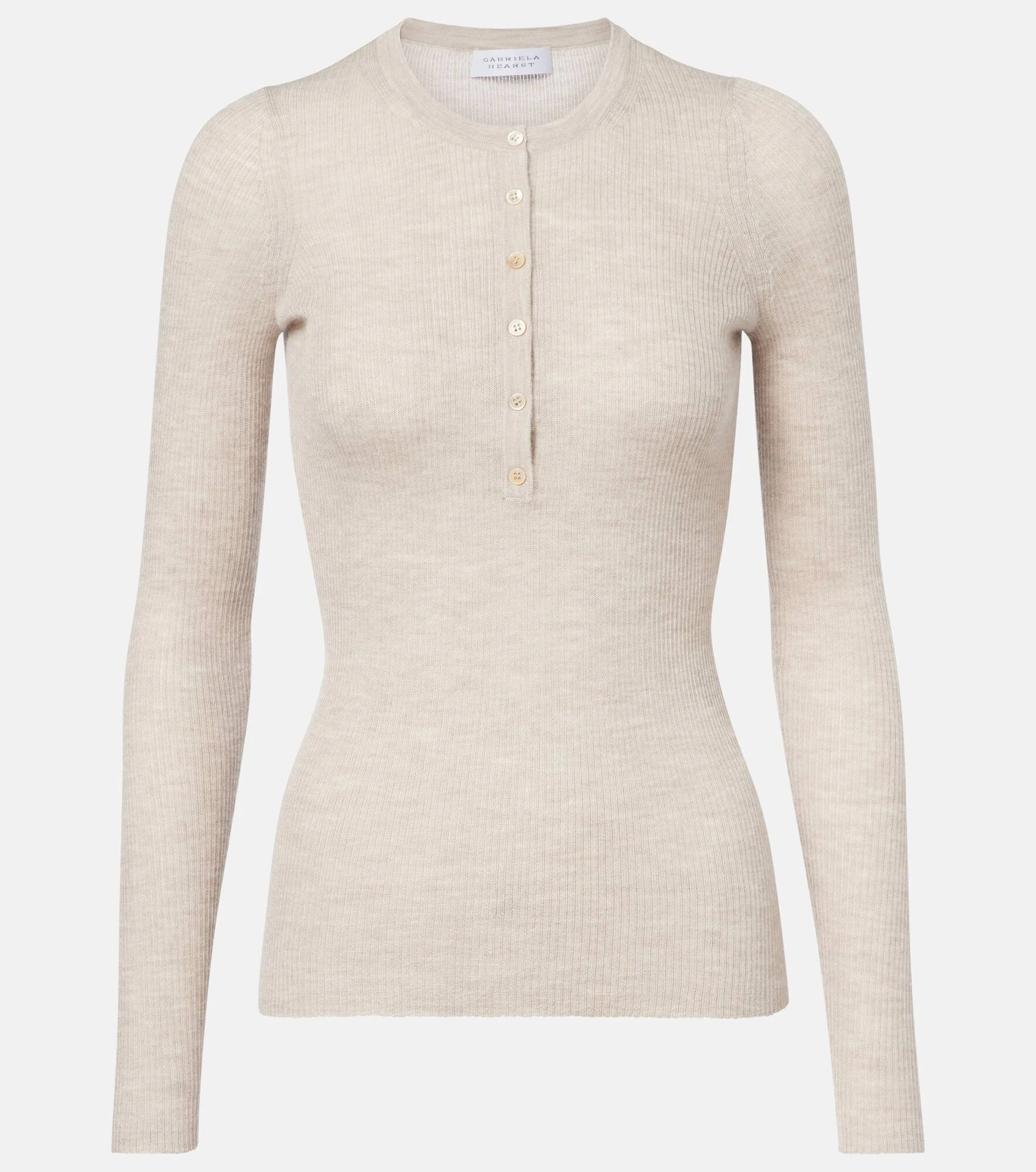 The Juliam Henley shirt from Gabriela Hearst is an endlessly versatile essential to wear on repeat. The design is rib-knitted from cashmere and silk for a soft feel, featuring a classic buttoned placket. Product Details - Material: 70% cashmere, 30% silk - Care instructions: dry clean - Made in China - Color: beige - Designer color name: Oatmeal - Closure: partially buttoned front - Item number: P01146759 Size & Fit - True to size - Semi-sheer - Fitted - Stretchy fabric - Falls to the hip - The model seen in the picture is 178cm-5'10" and wearing a size XS