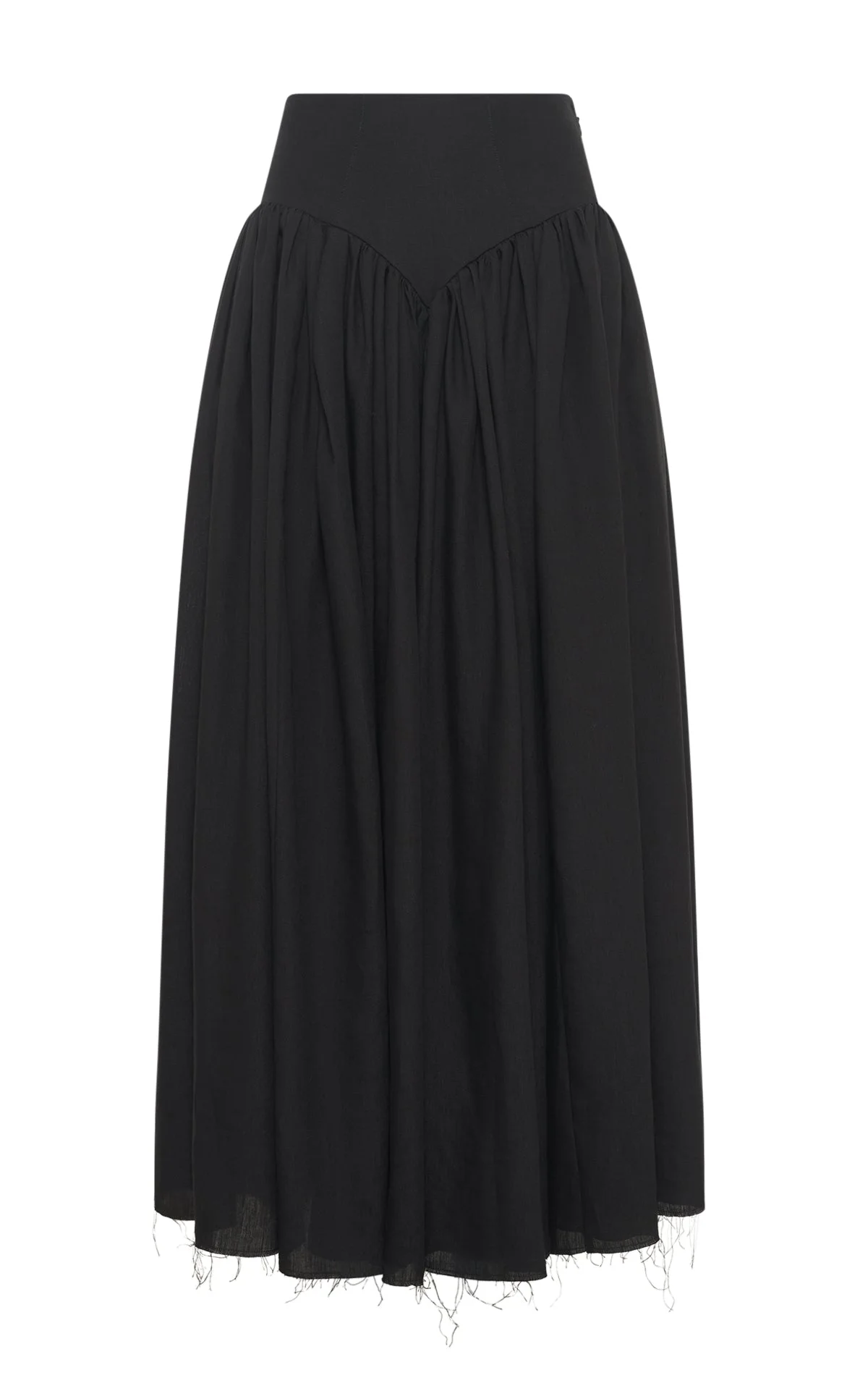 Juniper Maxi Pleated Skirt in Black Aloe Linen