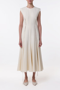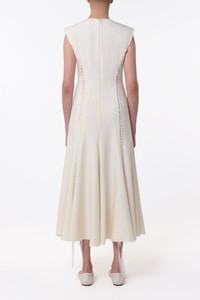 A flattering cap-sleeve detail finishes the perfectly molded fitted form of the Kendall dress; creating flattering ease in a compact wool trench fabrication. Contrast multi raw edge whip stitching punctuates this perfect piece, finishing in a subtle flare through the sweep. Details: - 100% Virgin wool - Back zipper closure - Italian sizing - Made in Italy Size and Fit: Standard fit. Fits true to size. Model is 5'11" and wearing a size 38.