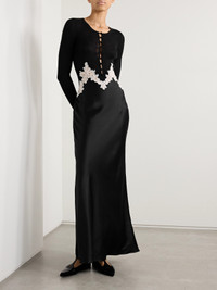 Kerry Lace-trimmed Ribbed Silk-chiffon And Satin Maxi Dress