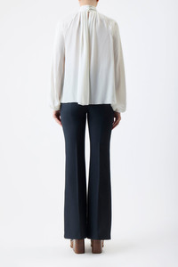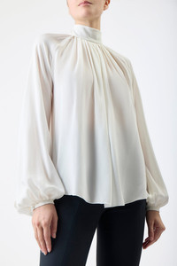 Kiian Pleated Top in Ivory Silk Georgette Twill