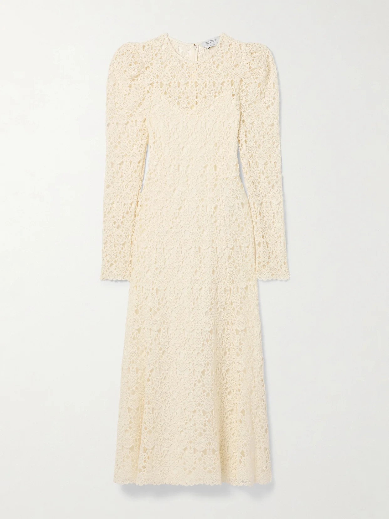 Gabriela Hearst's 'Lana' dress is made from delicate cashmere lace - the swirled pattern is a reinterpretation of one of the designer's personal sketches. Modeled after Victorian styles, it has a high neckline, romantic puffed sleeves and a detachable slip for coverage. Mirror the Fall '24 runway by pairing it with leather boots and a boxy tote.