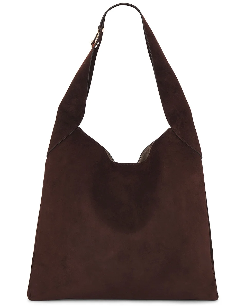 Details - Suede exterior and lining - Top magnetic closure - One main compartment - Gold-tone hardware at shoulder strap - Measures approx 43 cm W x 36 cm H x 5 cm D - Shoulder strap with a 27 cm drop - Made in Italy - Our Style No. GABF-WY15 - Manufacturer Style No. 425821