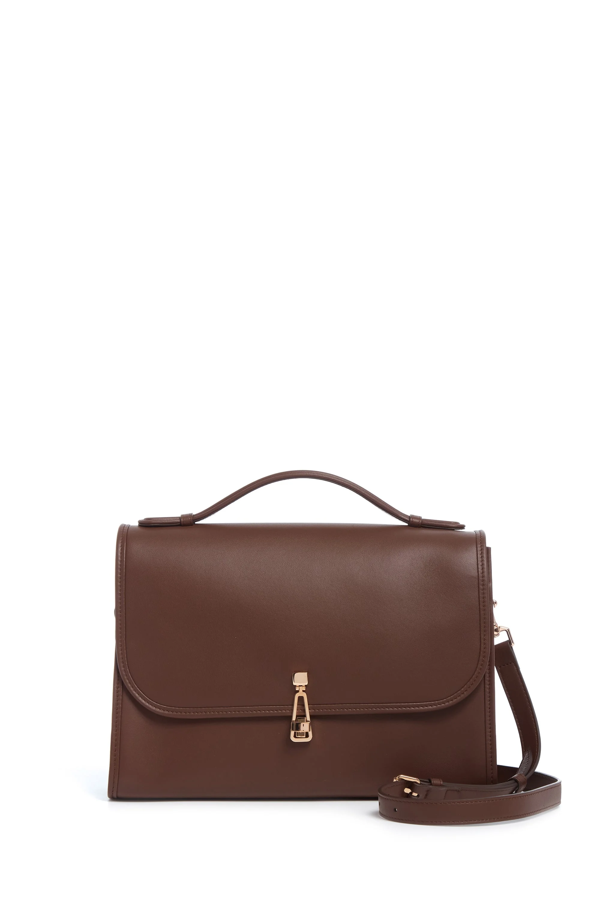 The Large Leonora Flap Bag is a satchel style with utilitarian leather binding, top-handle, removable and tuckable cross-body strap functionality in calf leather. All Leonoras feature an outside open pocket, credit card slots, interior pocket and back pocket slip. Details: - 100% Calf leather exterior - 100% Nappa leather interior - Turnlock closure - Two credit card slots - Front interior pocket - Outside exterior pocket - Detachable 23.5 crossbody strap - Non-detachable top handle - Length: 4" | 102 mm - Height: 8.5" | 216 mm - Width: 12.5" | 318 mm - Made in Italy In the interest of maintaining our brand values of sustainability, this item is produced in limited quantities but available to shop online.