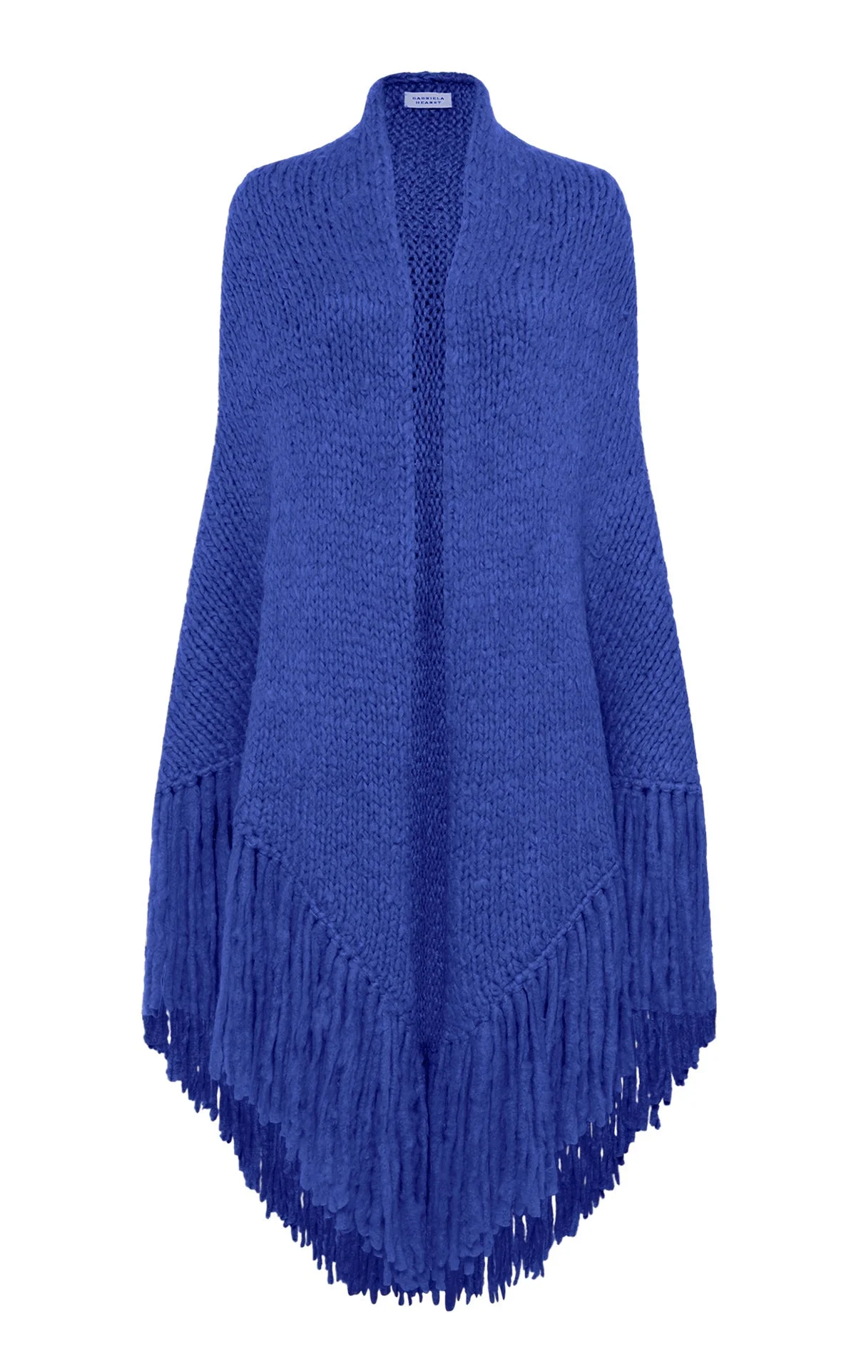 This cashmere wrap was hand knitted by Manos Del Uruguay. The organization gives jobs to women, allowing them to be independent. The beautiful and timeless piece is made from the highest quality cashmere and is detailed with a fringe. Details: - Base: 78'' Sides: 44'' - 100% Cashmere - Italian Yarns. - Dry Clean.