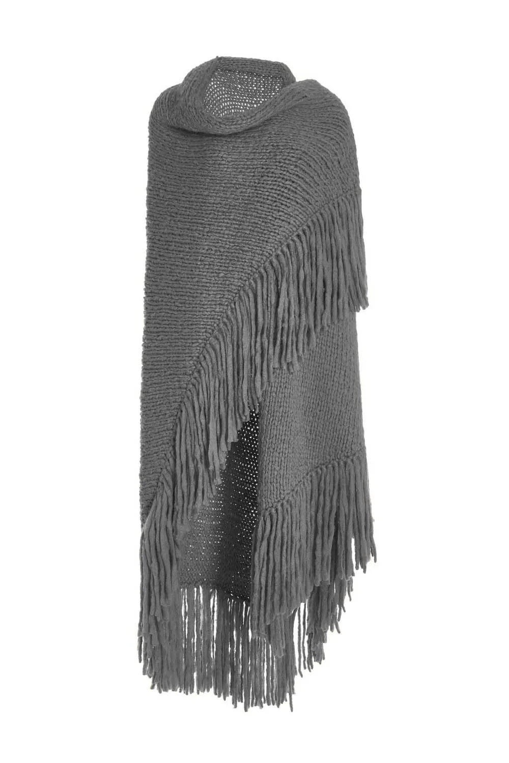 This cashmere wrap was hand knitted by Manos Del Uruguay. The organization gives jobs to women, allowing them to be independent. The beautiful and timeless piece is made from the highest quality cashmere and is detailed with a fringe. Details: - Base: 78'' Sides: 44'' - 100% Cashmere - Made in Uruguay. - Dry Clean.