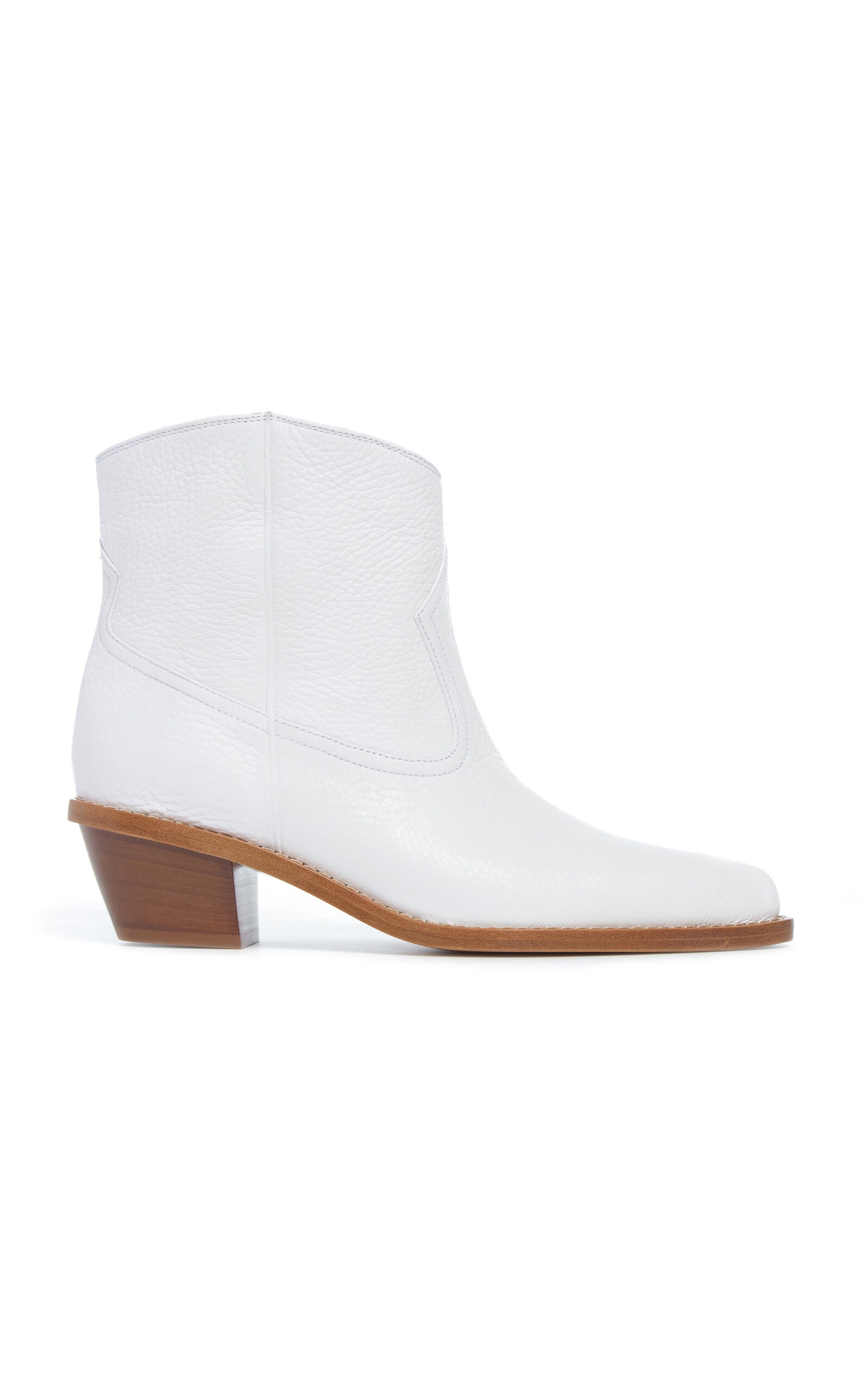 The sustainability pioneer is the industry leader in luxurious clothing and accessories that strike an understated elegance, yet are crafted with the utmost attention-to-detail and commitment to ethics. The 'Leduc' western-stitched ankle boots are crafted in Italy from pebbled deerskin leather and feature a cuban heel and tapered toe. PRODUCT DETAILS - Heel measures approximately 45mm / 1.5" - Slip on - Composition: 100% deer skin upper, 100% calf sole - Made in Italy