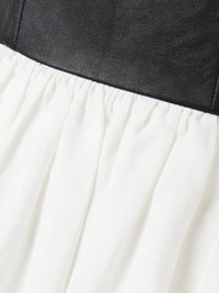 Gabriela Hearst's 'Lehti' maxi dress is designed with a black leather bodice and white linen skirt, creating the look of separates. It has a strapless neckline and is gathered along the waist for pretty volume and movement. The bow at the cutout back adds romance while allowing you to adjust the fit. Lower-Impact Materials. This product is made using at least 50% lower-impact materials or ingredients. Find out more about our NET SUSTAIN criteria here. Size & Fit - Fits true to size, take your normal size - Designed to be fitted at the bust and waist, loose at the hip - Ties at the back for an adjustable fit - Supple, non-stretchy leather with non-stretchy fabric skirt - Model is 180cm/ 5’11” and is wearing an IT 40 Model measurements: - Bust: 80cm/ 31.5" - Waist: 70cm/ 27.5" - Hip: 93cm/ 36.5" Details & Care - White linen, black leather - Concealed hook and zip fastening at side, ties at back - 100% linen - Dry clean