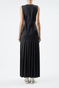 The Leone Vest Dress offers a complete ensemble in one perfectly executed piece: A tailored vest is combined with a graphically pleated skirt that skims mid-calf. Details: - 100% Virgin Wool - Made in Italy Size and Fit: Fits true to size. Model is 5'11" and wearing a size 38.