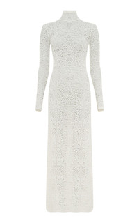 Lethe Pointelle Knit Maxi Dress in Ivory Virgin Wool Silk