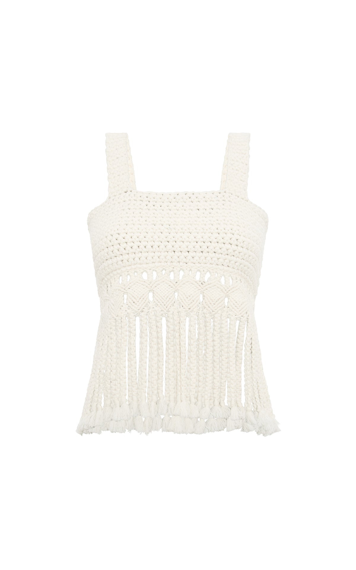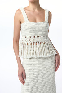 Lilea Fringe Crochet Top in Ivory Cashmere